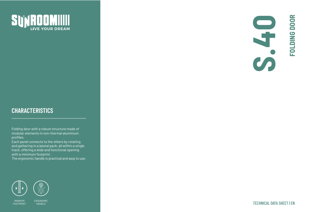 Harmo vrata S.40 nude robusnu konstrukciju izrađenu od modularnih elemenata s aluminijskim profilima bez termičkog prekida. Svaki stakleni panel povezan je s ostalima, rotira se i skuplja u bočni paket unutar jedne vodilice, omogućujući širok i potpuno slobodan otvor za uživanje u svježem zraku i obilju prirodnog svjetla, bez ograničenja kakva imaju klasični stakleni sustavi s fiksnim panelima.