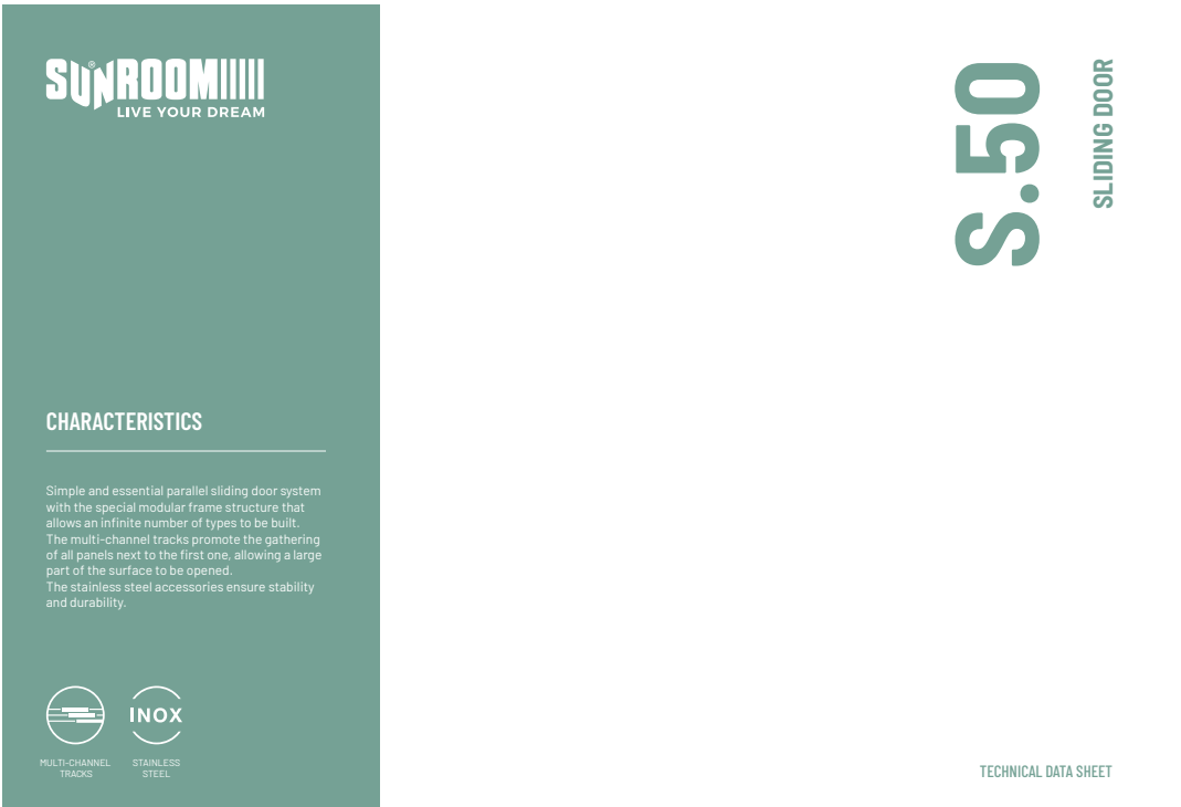 Jednostavno konstruiran S.50 paralelni klizni sustav s profilima bez termičkog prekida pruža dobru zaštitu od vjetra, kiše i vanjske buke. Idealan je za zaštitu bioklimatskih pergola, trijemova ili zimskih vrtova, ali i za poslovne prostore otvorene za javnost.