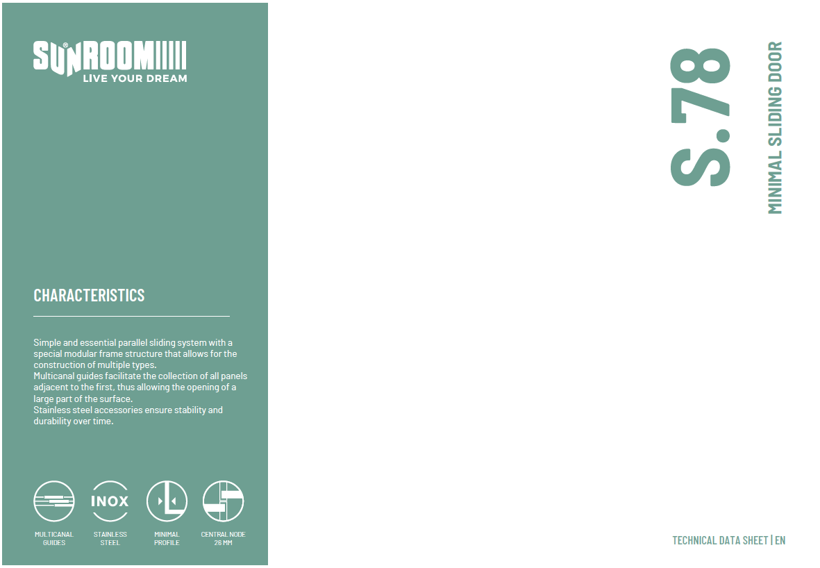 S.78 nije samo klizni sustav; to je poziv na prelazak granica i prihvaćanje novih dimenzija prostora i slobode. Njegov minimalistički, esencijalni i profinjeni dizajn stapa se s okolinom, uklanjajući vizualne barijere i pojačavajući percepciju prostora.