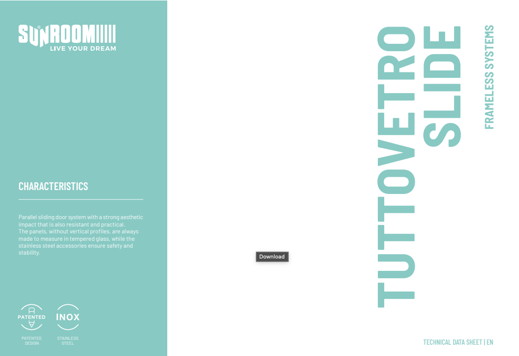 Uz Tuttovetro Slide bezokvirni paralelni klizni sustav, možete elegantno i inovativno personalizirati svoju bioklimatsku pergolu, balkon, terasu ili bilo koji vanjski prostor. Inox (nehrđajući čelik) dodaci, kvaliteta korištenih materijala, pažnja posvećena detaljima te dugogodišnje iskustvo u izradi staklenih sustava čine ključnu razliku pri odabiru ovog arhitektonskog rješenja za vaš dom ili poslovni prostor.